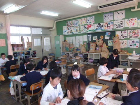 分数の問題を,班で協力して解いていました。