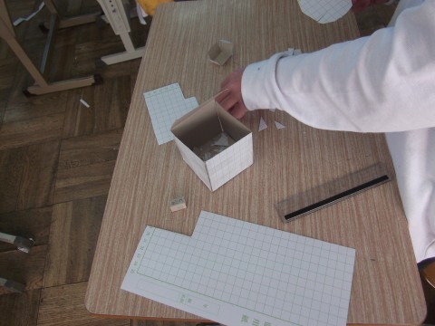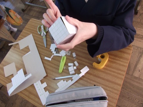 方眼紙を使って,立方体や直方体をつくっていました。
