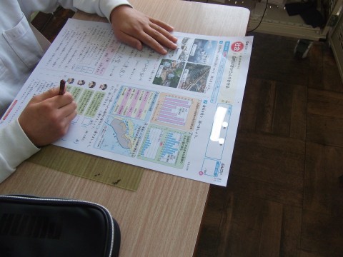 「自然災害から人々を守る」のテストに取り組んでいました。