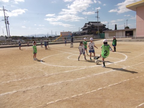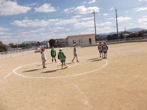 攻撃と守備に分かれて,ゲームに挑戦しています。