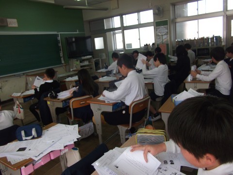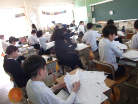 1年間で学習してきたプリントを並べて,まとめていました。