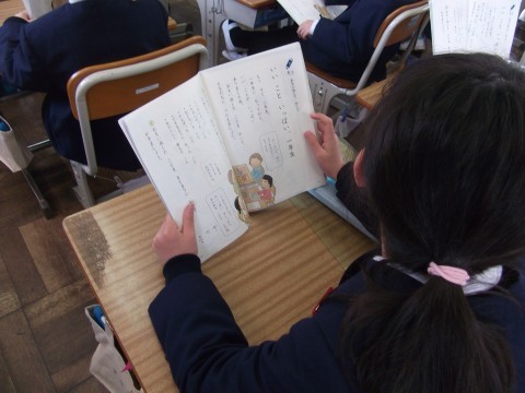 1組の国語の学習のようすです。この1年間にどんなことがあったのかを振り返っていました。