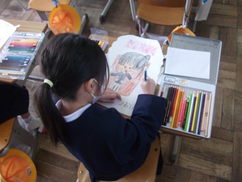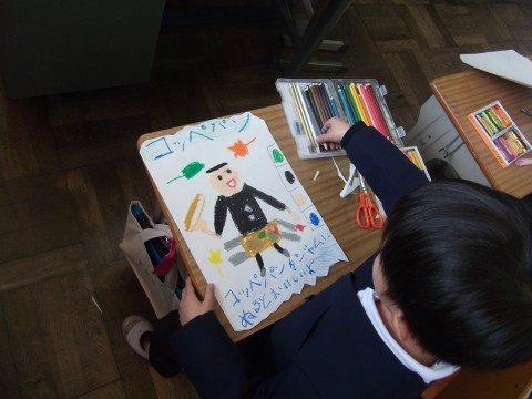 平尾小学校のことについて次の1年生にわかるようにポスターにまとめています。