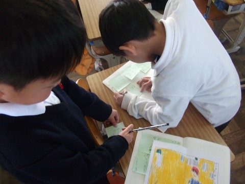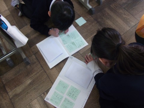 友だちの文章の良いところを付箋に書いて,共有していました。