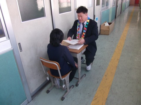 5年生 2 公開日 2026/04/02 更新日 2026/03/24 5年生 2組のようすです。一人ひとり通知表を手渡してもらっていました。先生の首には,子どもたちがお礼の気持ちで作った首飾りが巻いてあります。