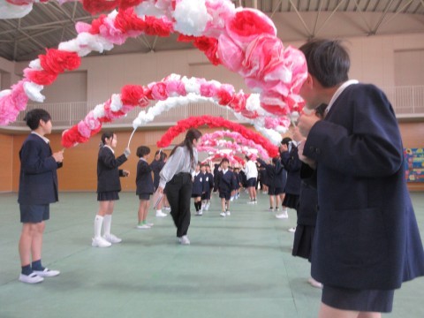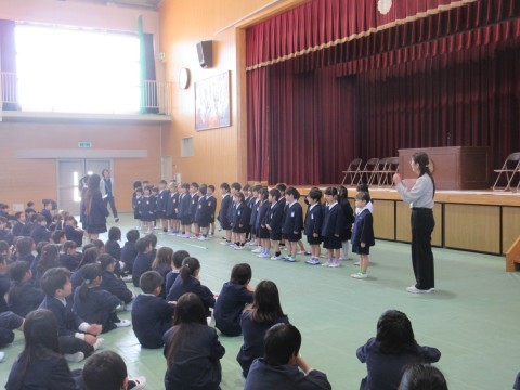 最後に対面式を行いました。新1年生を、2年生から6年生までの児童が温かい拍手で迎えました。