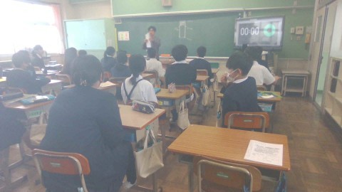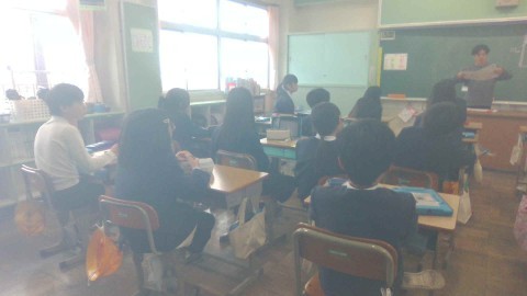 宿題についての説明を聞いています。みんな先生の話をしっかり聞いています。