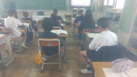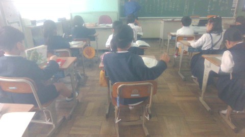 国語の学習の様子です。谷川俊太郎さんの詩「どきん」を読んで,その様子を想像して音読をしていました。