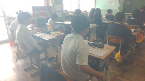 国語の学習の様子です。漢字の練習をしています。6年生にもなると,難しい漢字が増えてきました。「①にんしき」「②せんがん」「③いぶつ」「④じゅんじょう」書けますか?