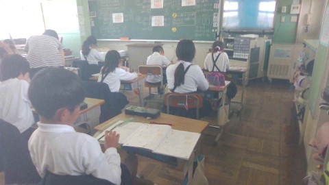 算数の学習の様子です。「かける数を分けて計算しても、答えは同じになる」ということについて学習していました。最後のふりかえりでは、「分ける場所は違っても答えは同じ」「二本に分けてもできた」などの意見を発表していました。