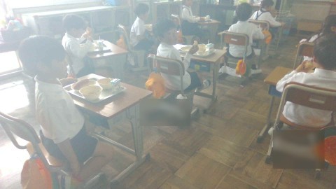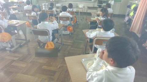給食の様子です。みんな静かに落ち着いて給食を食べていました。「パンがおいしかった!」「小おかずのツナとポテトのマヨネーズ風味焼きがおいしかった!」「誰が作ってくれたの?」など、うれしそうな声が聞こえてきました。