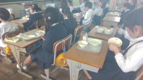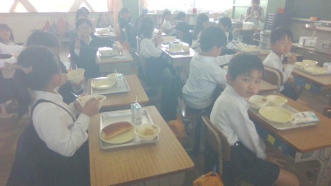 給食の時間の様子です。みんな美味しそうに食べています。