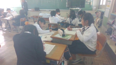 国語の学習の様子です。物語文「春風をたどって」を読み、「ルウ」の「ノノン」に対する気持ちの変化について考えていました。