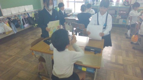 道徳の学習の様子です。「あいさつ名人」を題材に,本当のあいさつ名人になるにはどんなことが大切なのかを考えていました。