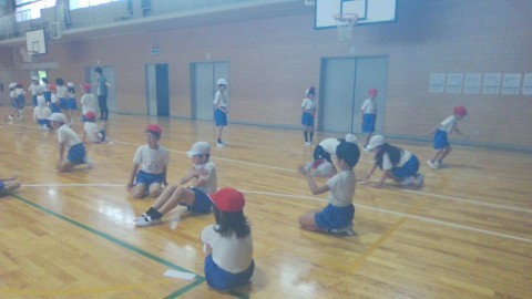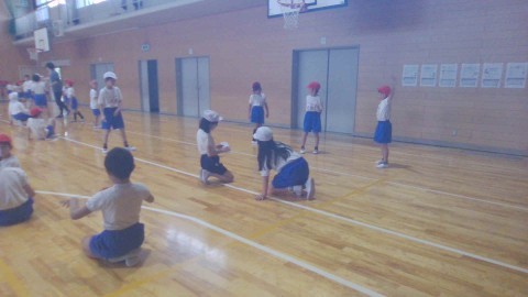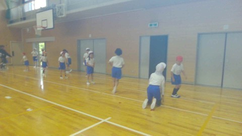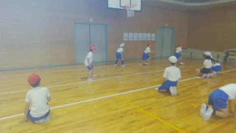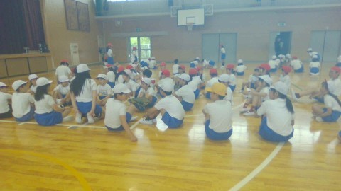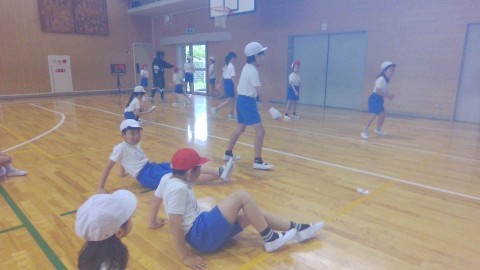 体育の学習の様子です。2年生の新体力テストの種目である反復横跳びと上体起こしの補助と記録を5年生がサポートしていました。