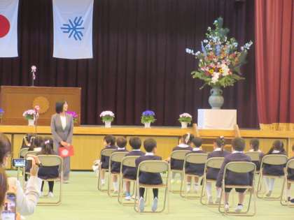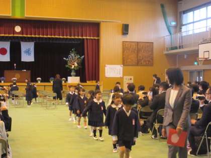 式が終わると担任の先生と一緒に教室へ向かいました。