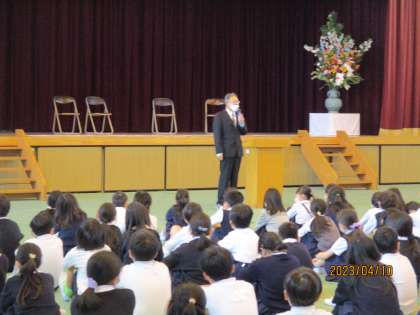 校長先生の紹介のあと,平尾っ子のみんなにごあいさつがありました。