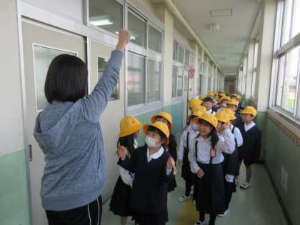 のかけ声で運動場に向けて出発です。