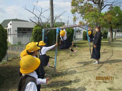 教室でお勉強した後は,運動場で遊びました。