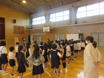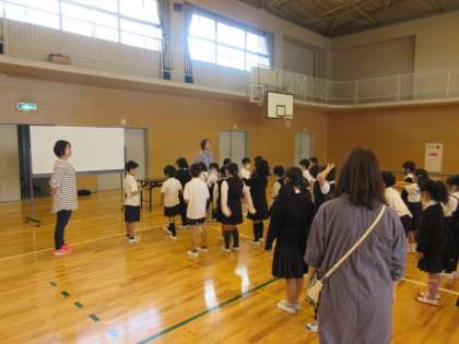 3年生全体で集まるときの並び方の確認をしていました。
