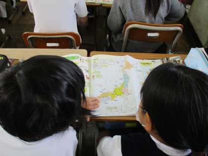 地図帳や教科書を見て、どんな学習をしていくのか見通しを立てていました。
