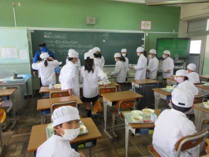 2〜6年生は今日から給食が始まりました。