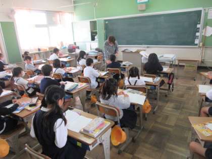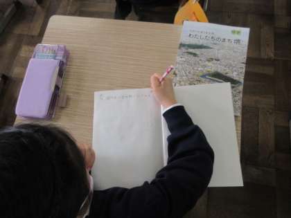 1組は計算ドリルの答え合わせと社会科の学習で平尾小学校区のことを調べていました。