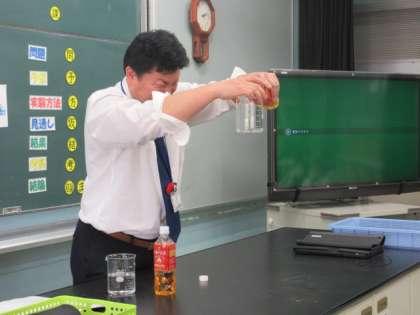 理科の先生が,「秘密の紅茶」を空のビーカーに入れると????