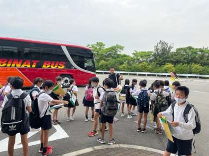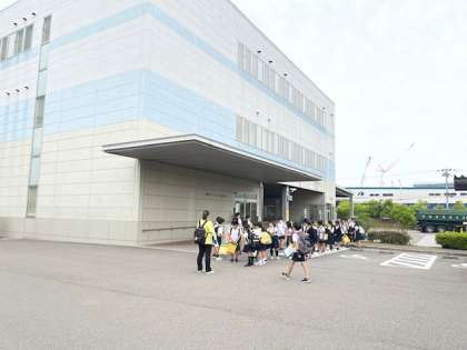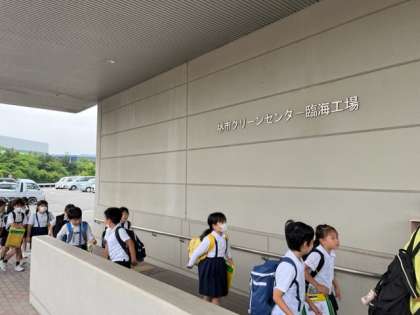 クリーンセンター臨海工場に着きました。これから工場内を見学します。楽しみですね。