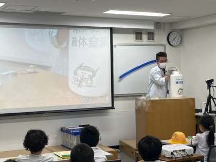 大阪科学技術館のスタッフの方が目の前で極低音(きょくていおん)の実験をしてくれました。