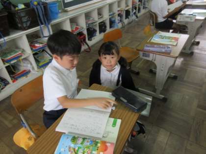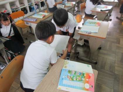 「田んぼ」「学校」「車」「貝」などの言葉を必ず使って文章を考えました。