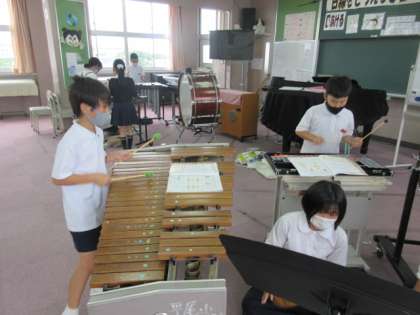 合奏の練習をしていました。曲目は「リボンのおどり」です。