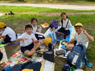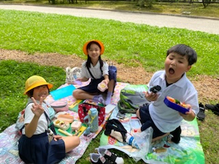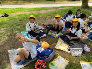 6月13日(火) お弁当は、大仙公園で食べます。 みんな美味しそうに食べています。