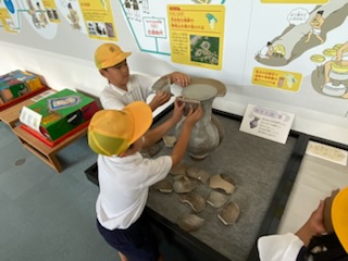 6月13日(火) 博物館見学の後は、土器のパズルをしたり、石室の模型の中に入ったりしました。