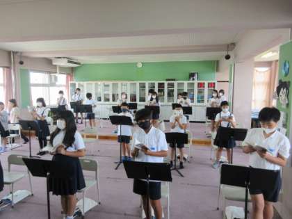 6月19日(月) 1組の音楽の様子です。 「絆」の歌唱をしていました。