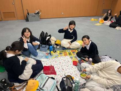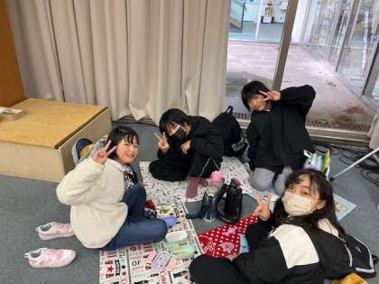 1月18日(木) 雨なので館内でお弁当を食べています。