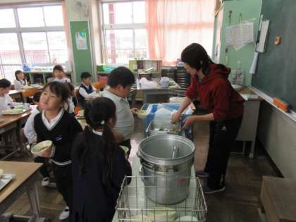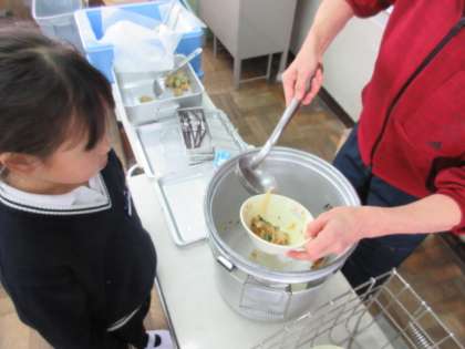 1月19日(金) 1年生の給食の様子です。 食べる量も増えて、食缶が空っぽになることが多くなりました。