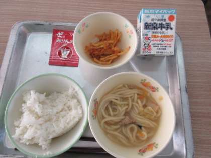 1月23日(火) 今日の給食です。 人気メニューのちゃんぽんが出ました。