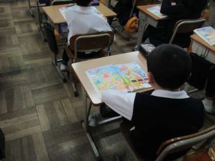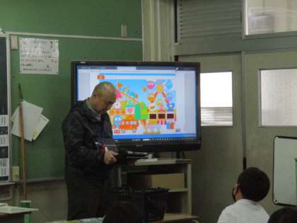 1月24日(水) 英語の学習です。 みんなでテレビを見ながら、英単語を発音していました。