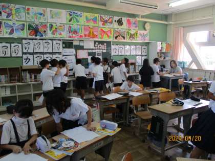 教えてもらったことと自分が感じたことなどを表現の仕方に気を付けてワークシートに書きこんでいました。