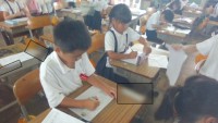 2組の国語の学習のようすです。「うみのかくれんぼ」のテストに取り組んでいました。