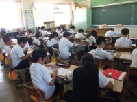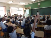 3年生の保健の学習のようすです。身体測定を行う前に保健の先生から体のしくみについ...