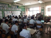 国語の学習の様子です。班ごとに考えた約束やきまりを,全体でまとめていました。