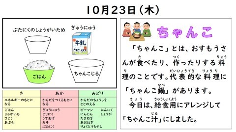10月23日(木) 今日の給食は