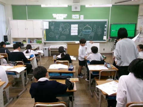 図工は「おかしの家をかこう」という題材でどんな家にしようかを考えています。