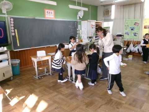 2年生の生活科では,手作りのおもちゃを使って,おもちゃまつりをしています。