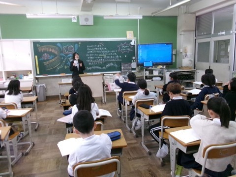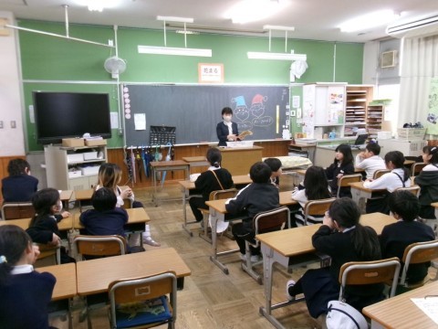 朝一番に体育館に集まり,終業式をしました。校歌を歌って,校長先生の話,生徒指導の先生の話があって,その後,児童会のみなさんから冬休みの過ごし方について劇を通して伝えてくれました。