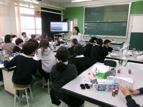 5年生の外国語と理科の授業です。外国語はNS(ネイティブスピーカー)さんとの授業です。理科は電磁石の実験をしています。