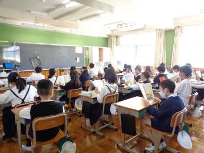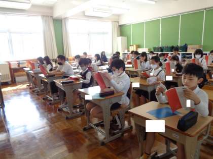 教科書を読んで朝の時間を過ごしている子どもたちです。
