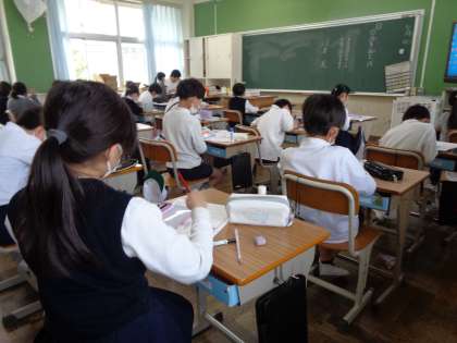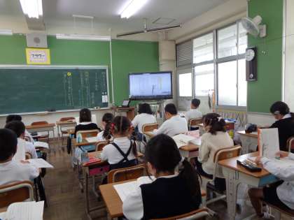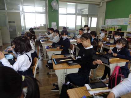 自己紹介カード作成中のクラスや、国語の物語文を聞いて感想をまとめるところのクラスのあります。